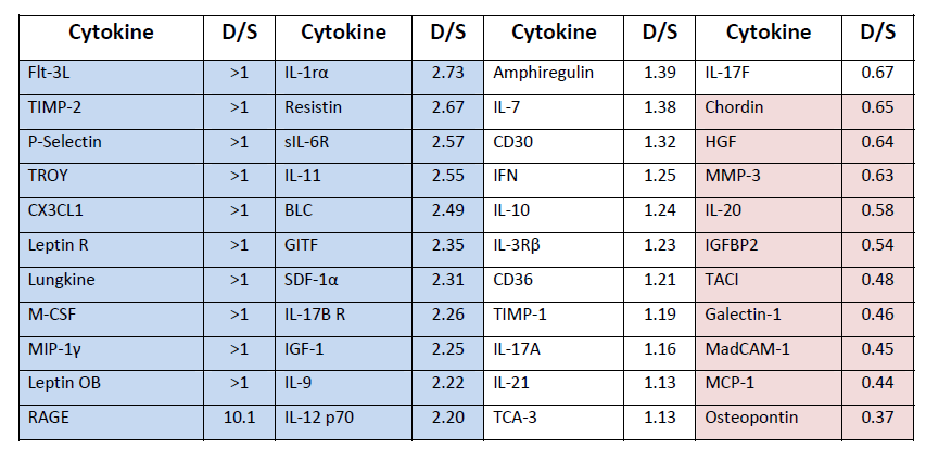 内皮细胞培养中不同的细胞因子表达分析(D:动态;S:静态)
