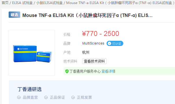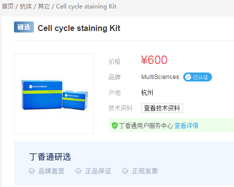 目前,联科生物已在丁香通研选上线五款产品,包含细胞周期试剂盒(Cell cycle staining Kit), ELISA试剂盒(Mouse TNF-α ELISA Kit), 细胞凋亡试剂盒(Annexin V-FITC/PI apoptosis Kit(适用于除C6以外的流式细胞仪)), 酶标二抗(Goat Anti-Rabbit IgG(H+L) HRP), 刺激阻断剂(PMA/Ionomycin mixture(250X)佛波酯/离子霉素混合物)。