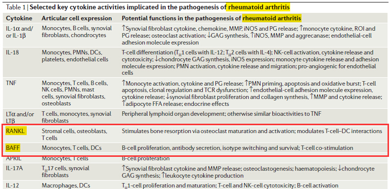 文献Cytokines in the pathogenesis of rheumatoid arthritis 总结了类风湿关节炎免疫应答过程中各因子的作用。