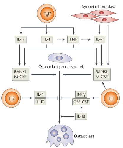 Fig:The key factors that regulate osteoclast differentiation in rheumatoid arthritis.