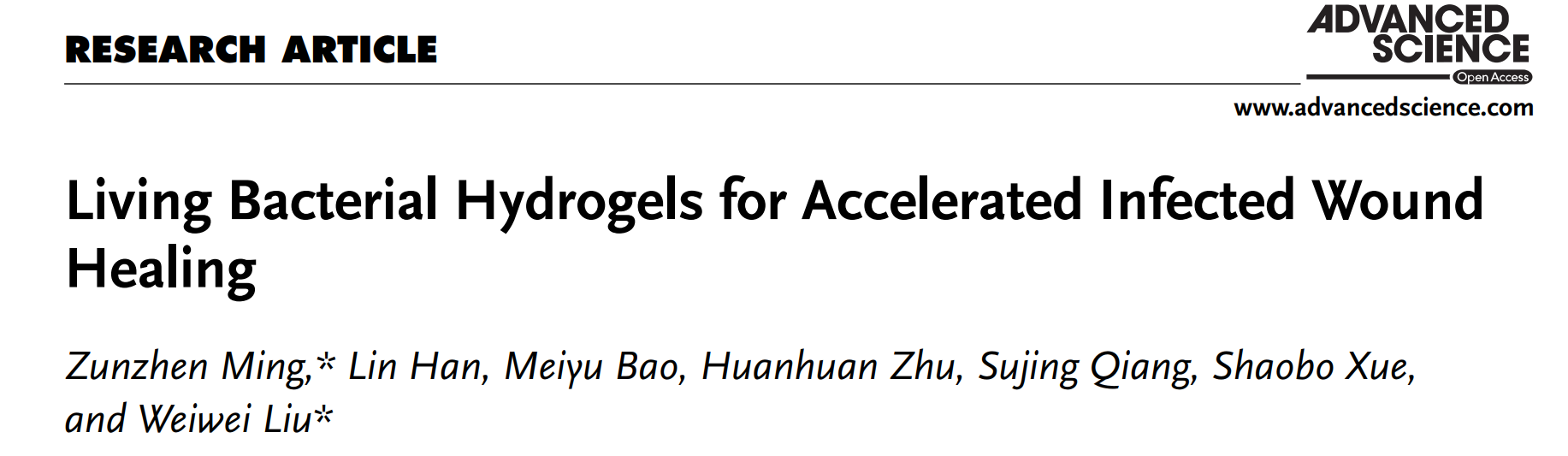 近日,上海市第十人民医院的研究团队在期刊Advanced Science上发表了题为:Living Bacterial Hydrogels for Accelerated Infected Wound Healing 的研究论文。该研究合成了一种对不同细菌具有良好抑菌效果,且能保护有益细菌免受免疫系统伤害的水凝胶敷料。体外实验亦揭示该水凝胶敷料可减轻炎症细胞浸润,促进胶原沉积,加速伤口愈合。