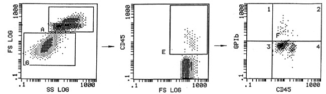 1) 下图最右侧图中 CD45/CD42b(GPIb)双阳性群体为白细胞-血小板聚集物。