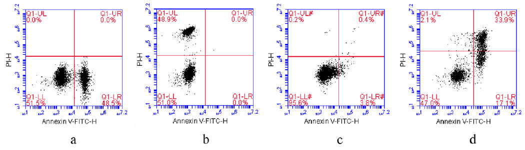 d.5 μM喜树碱诱导的HL60细胞,Annexin V-FITC/PI双染