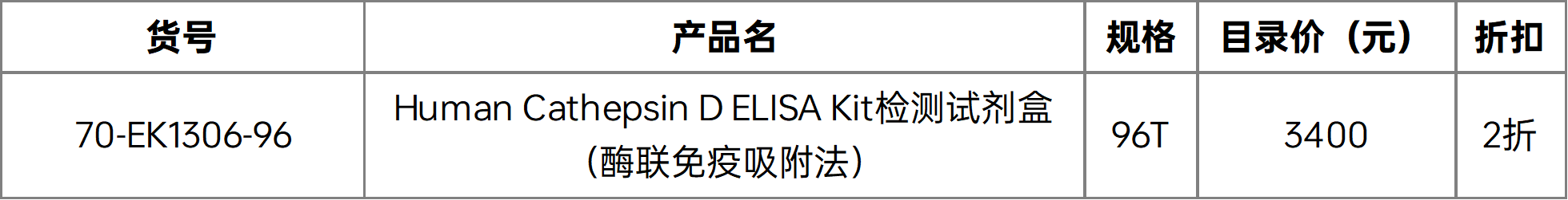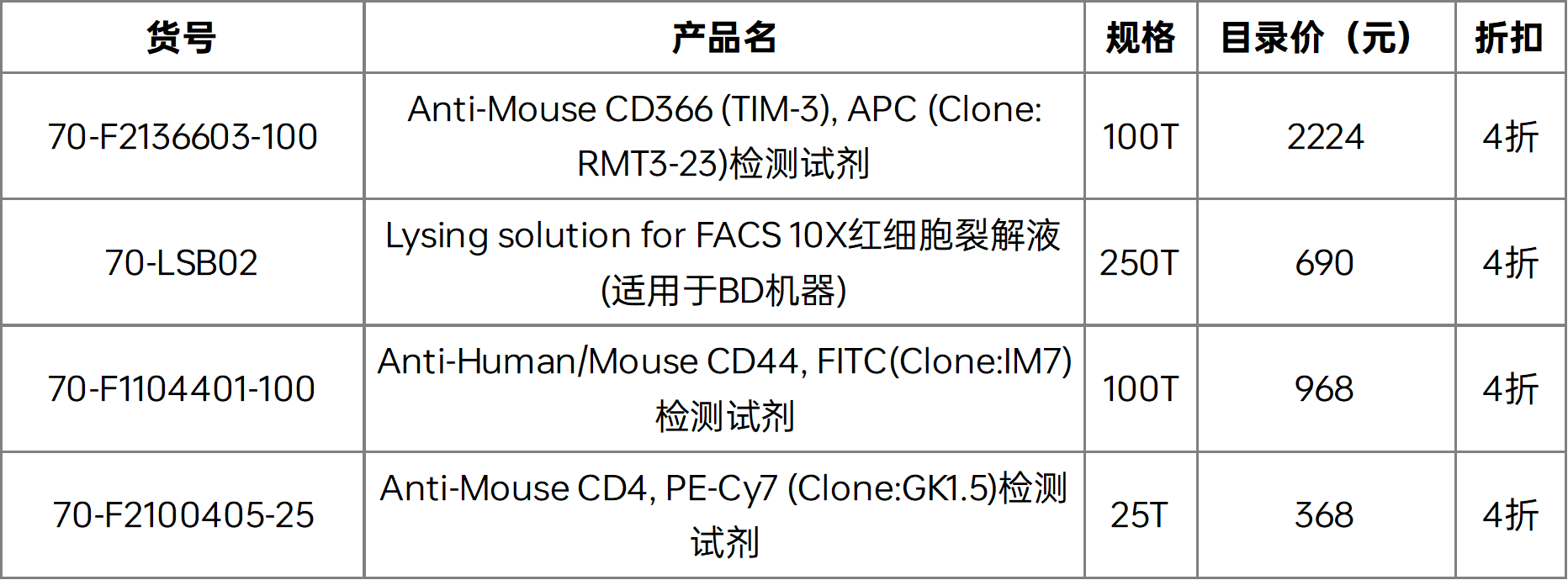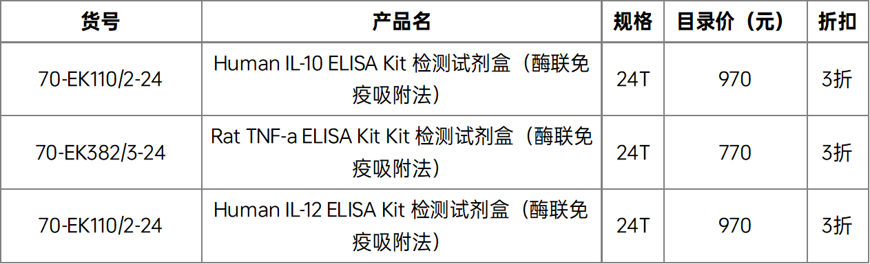 促销活动 | 优质临期(两个月以上)产品大促销!低至2折!快抢! Post published:2023-10-16 Post category:促销 / 市场活动Post views:2601 次访问 文章目录[隐藏] 金秋打折促销 ELISA系列产品 2折产品 4折产品 流式系列产品 2折产品 4折产品 联科生物部分自主产品 (ELISA系列 | 流式系列产品) 金秋打折促销 (下表所列) 最低2折,邀您共享金秋折扣 订购请联系当地销售人员, 为您推荐性价比最高的试剂, 节省实验成本,助力实验结果。 数量有限,欲购从速哦~ ELISA系列产品 2折产品 3折产品 4折产品 流式系列产品 2折产品 4折产品 Read more articles Previous Post【活动已结束】福利放送 | 发表文献得好礼 Next Post促销活动 | 联科生物双十一豪华大促 你可能也喜欢 类器官(Organoids)概述:什么是类器官?类器官研究进展、操作步骤及常见培养实例 2016-09-07 细胞因子安全不加价2018年中矩惠 2018-05-15 抗癌库——肿瘤相关小分子化合物 2017-08-08 BrdU/PI 双参数分析细胞周期 2020-03-25 论文分享(29) | 脾成纤维网状细胞新功能发现—促进脂质代谢和B细胞分化 2023-07-31 调节性B细胞的流式检测方案 2018-12-12 Biovision与表观遗传学 2015-01-27 尿蛋白荧光检测试剂盒 2014-11-26