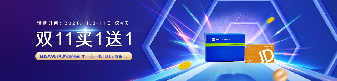| 活动内容 | ELISA 96T规格试剂盒买一送一张100元京东卡 |