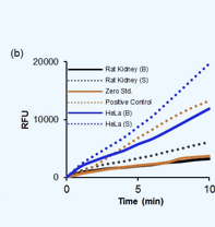 货号:93-K807-100 检测方法:Fluorescence (Ex/Em = 535/587 nm) 主要优点: ○简单、快速、方便--按照实验操作步骤即可测定 ○灵敏度—最低可以检测1 µU的重组人AHCY活性 ○特有性-市场上第一个即用型AHCY活性检测试剂盒 ○应用广泛-适用于组织、细胞和纯化重组蛋白样本 试剂盒组分: • AHCY Assay Buffer • Homogenization Buffer • OxiRed™ Probe • SAH Substrate • Enzyme Mix I • Enzyme Mix II • Adenosine Standard (10 mM) • AHCY Enzyme (Positive Control)