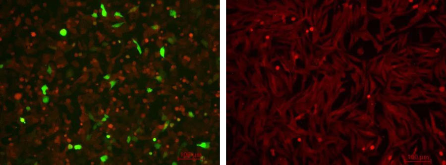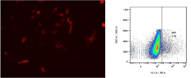 荧光蛋白(GFP、mCherry、YFP、mRuby等)常被用作蛋白质表达的标记,即细胞被转染含有启动子序列、目的基因序列和荧光蛋白序列的质粒。当目的基因表达产生目的蛋白时,其下游的荧光蛋白基因共同表达,从而使细胞发出荧光信号。该技术应用于多种研究,例如在体内追踪移植细胞,检测细菌或病毒感染,以及鉴定基因功能等。