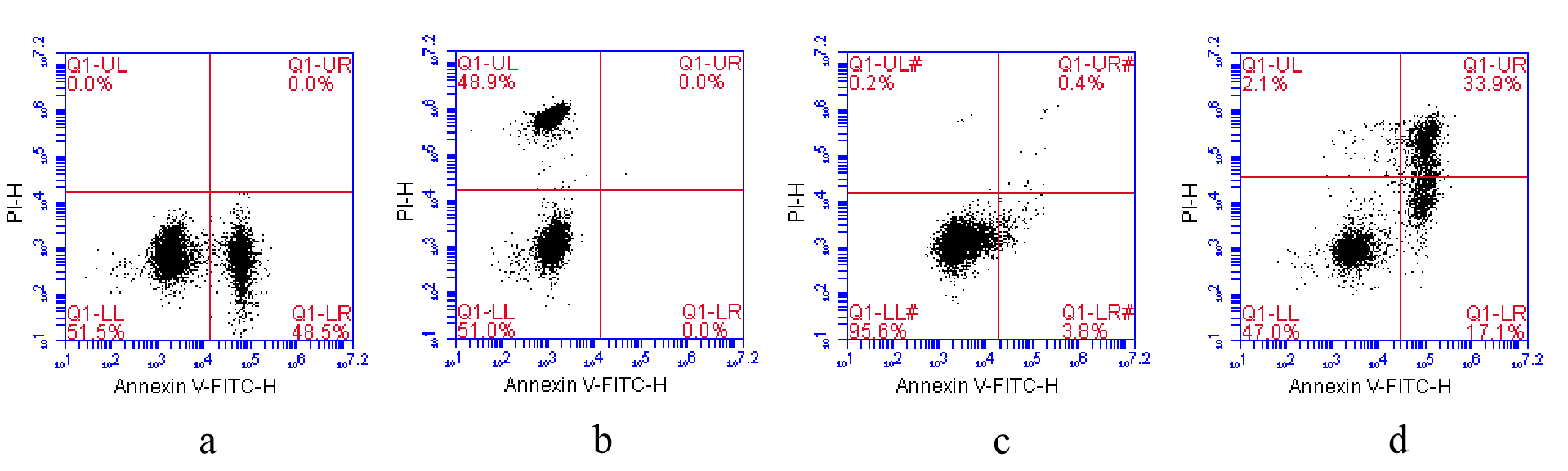 d.5 μM喜树碱诱导的HL60细胞,Annexin V-FITC/PI双染