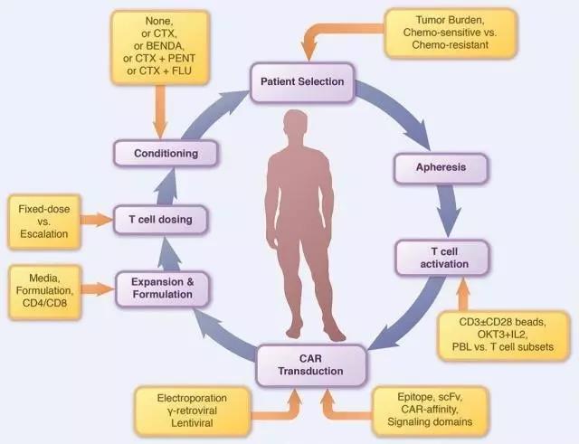 | 2017年注定是CAR-T治疗里程碑式的一年。Novartis和Kite的CAR-T疗法上市申请都递交了,不出意外的话,今年CAR-T就会走上临床。已经处于优势地位的Novartis乘胜追击,先是CTL019再次获得「重大突破」称号;近期,又与bluebird及Celyad达成合作协议,获得CAR-T相关专利使用权。 时至今日,几乎已经听不到对CAR-T疗法的质疑了。大家现在最关心的是,这个治疗过程极其复杂的疗法究竟如何落地,让更多的普通患者受惠,毕竟一次治疗费用高达数十万美元,不是一般患者能承受的。 来自Fred Hutchinson 癌症研究中心的Matthias Stephan博士另辟蹊径,在CAR-T治疗历史上第一次实现在体内构建CAR-T细胞。从理论上讲这种疗法不仅大大简化了CAR-T治疗的流程,降低了治疗风险,更重要的是这种方法会大大降低治疗成本,让CAR-T变得更亲民。上个月中旬,Stephan博士团队的这项研究刊登在著名期刊《自然 纳米技术》上。 CAR-T治疗在取得可喜成果的同时,也让我们看到了它的问题和局限。 第一,治疗过程相当复杂。该疗法需要从癌症患者的血液中提取T细胞,在实验室中对其进行基因改造、培养,这个过程持续时间少则10天以内,多则3周以上[5],然后再将其回输到患者体内。