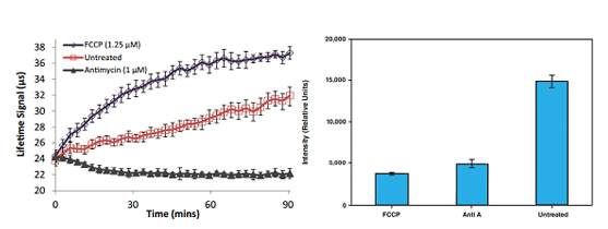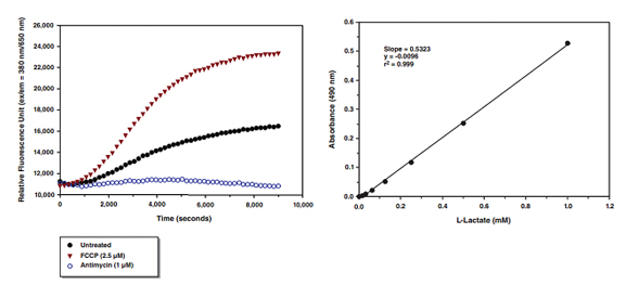 3.Oxygen Consumption/Glycolysis Dual Assay Kit (601060) 利用MitoXpress®Xtra磷光氧探针测定活细胞的耗氧率,定量测定胞外乳酸盐测定糖酵解。本试剂盒可有效筛选调控线粒体和糖酵解功能的化合物。