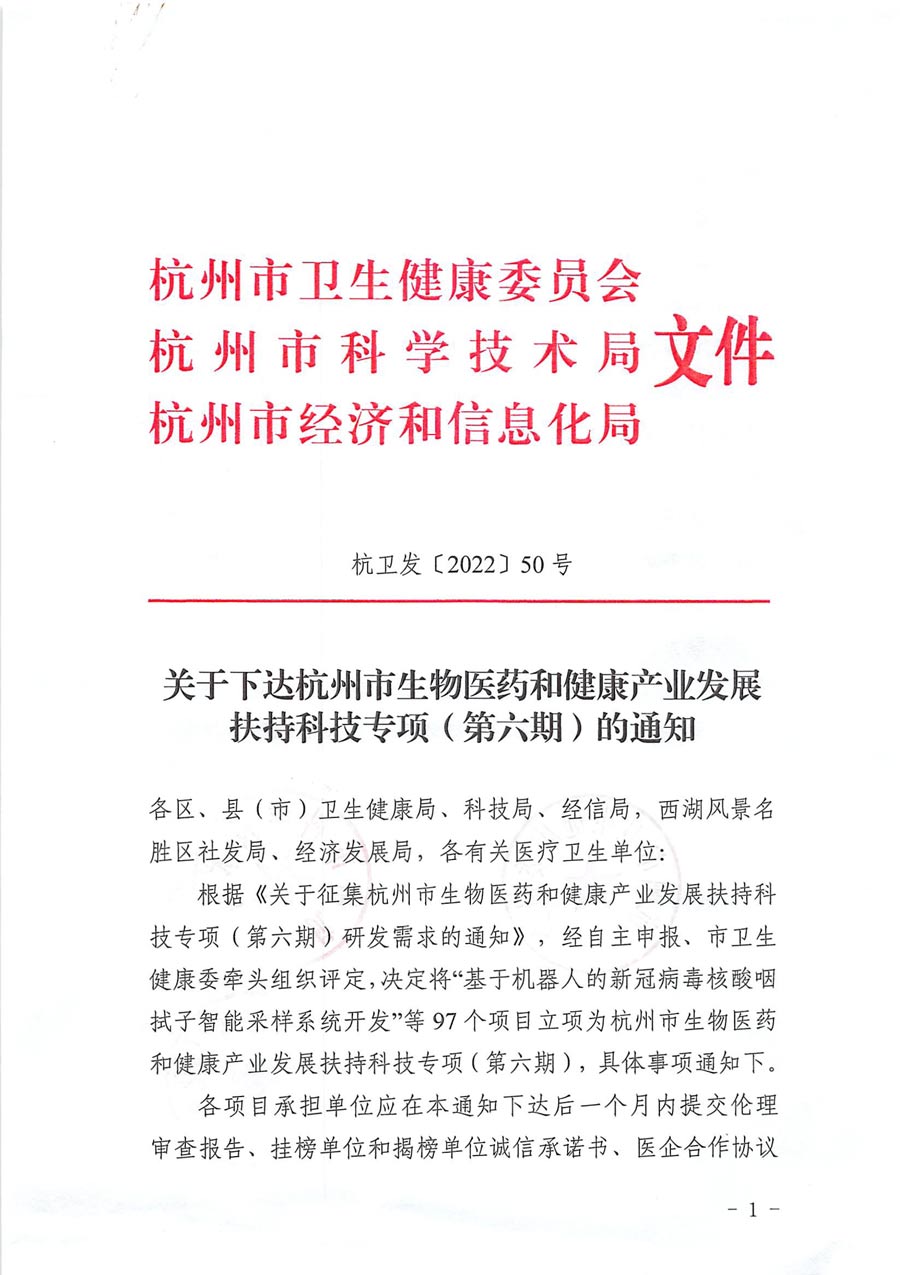 “杭州市生物医药和健康产业发展扶持科技专项”是为全面贯彻落实《杭州市促进生物医药与健康产业高质量发展的行动方案》等文件要求,扎实推进杭州市生物医药与健康产业发展,支持引导全市医疗卫生健康单位高峰学科、重点学科团队及优势临床资源主动对接企业需求,将医企融合关口前移,促进临床研究与产业化对接融通的政府项目。
