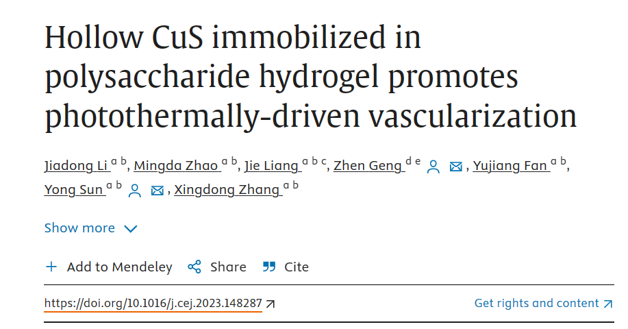 标题:Hollow CuS immobilized in polysaccharide hydrogel promotes photothermally-driven vascularization