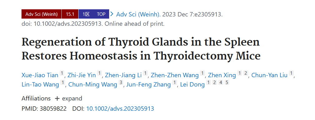 标题:Regeneration of Thyroid Glands in the Spleen Restores Homeostasis in Thyroidectomy Mice