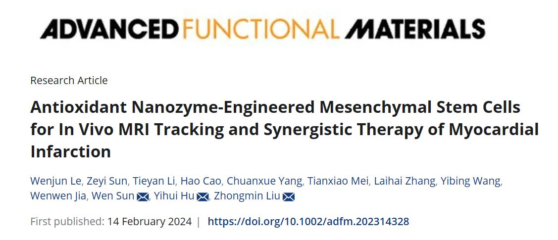 标题:Antioxidant Nanozyme-Engineered Mesenchymal Stem Cells for In Vivo MRI Tracking and Synergistic Therapy of Myocardial Infarction