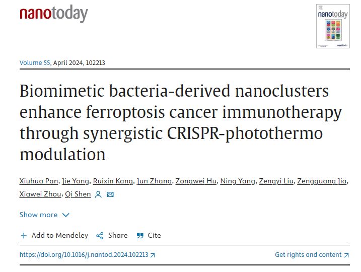 标题:Biomimetic bacteria-derived nanoclusters enhance ferroptosis cancer immunotherapy through synergistic CRISPR-photothermo modulation
