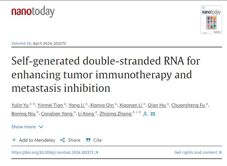 标题:Self-generated double-stranded RNA for enhancing tumor immunotherapy and metastasis inhibition