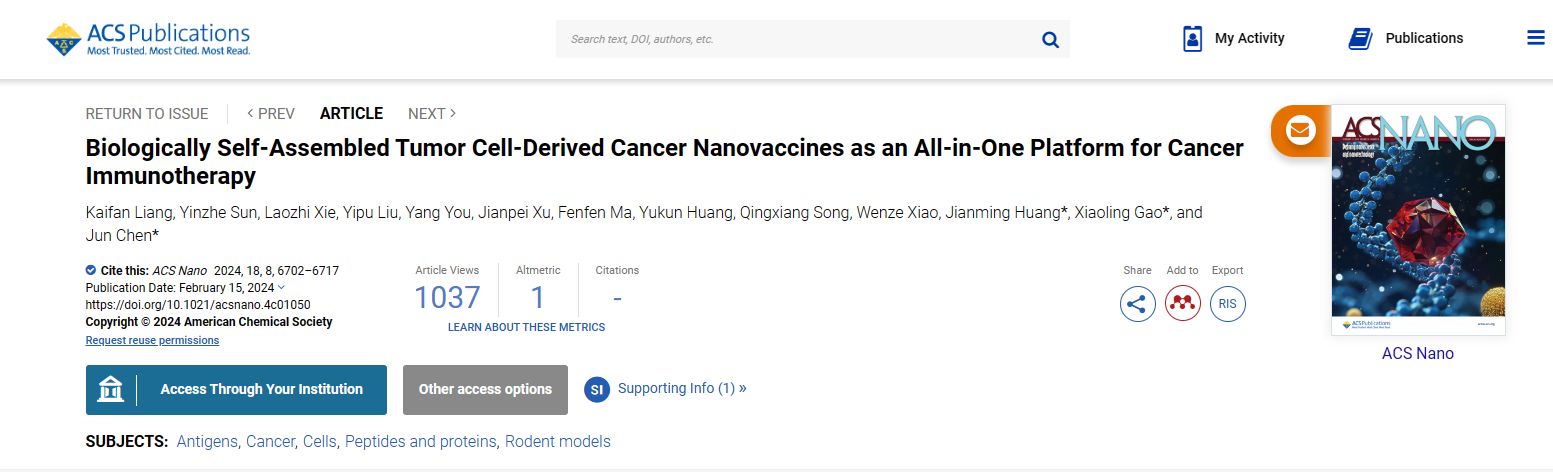 标题:Biologically Self-Assembled Tumor Cell-Derived Cancer Nanovaccines as an All-in-One Platform for Cancer Immunotherapy