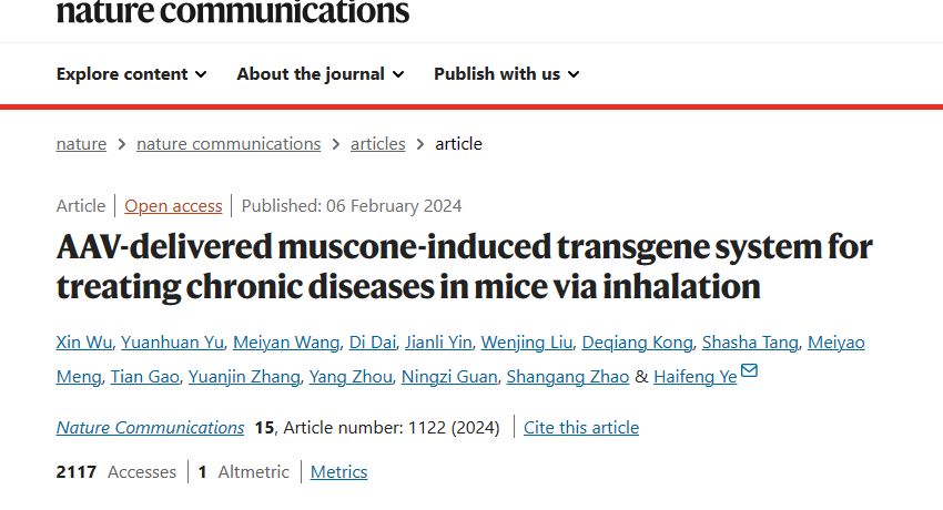 标题:AAV-delivered muscone-induced transgene system for treating chronic diseases in mice via inhalation