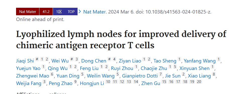 标题:Lyophilized lymph nodes for improved delivery of chimeric antigen receptor T cells