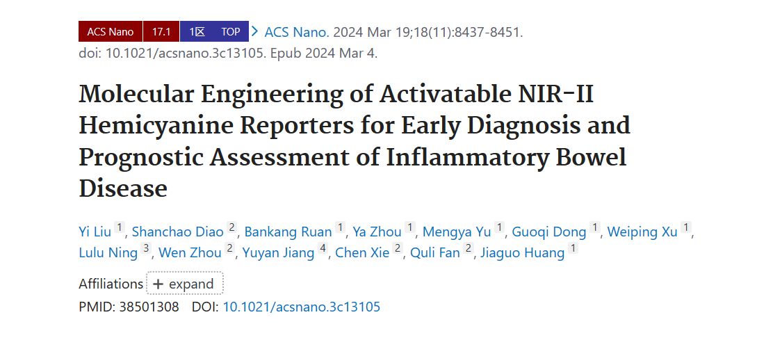 标题:Molecular Engineering of Activatable NIR-II Hemicyanine Reporters for Early Diagnosis and Prognostic Assessment of Inflammatory Bowel Disease
