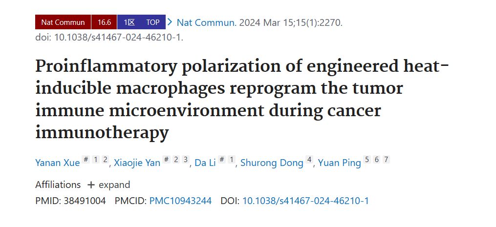 标题:Proinflammatory polarization of engineered heat-inducible macrophages reprogram the tumor immune microenvironment during cancer immunotherapy