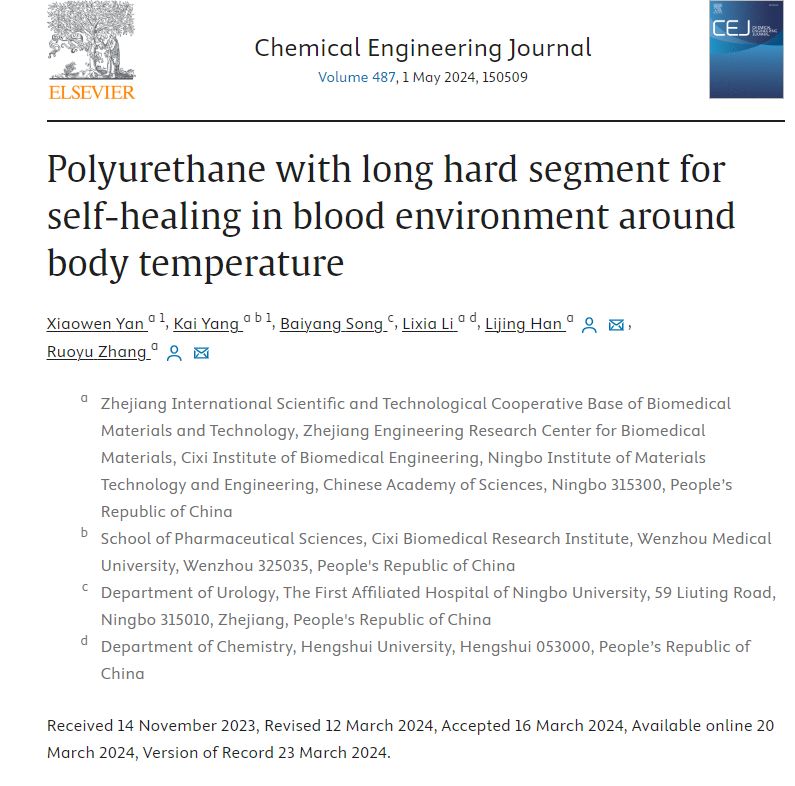 标题:Polyurethane with long hard segment for self-healing in blood environment around body temperature