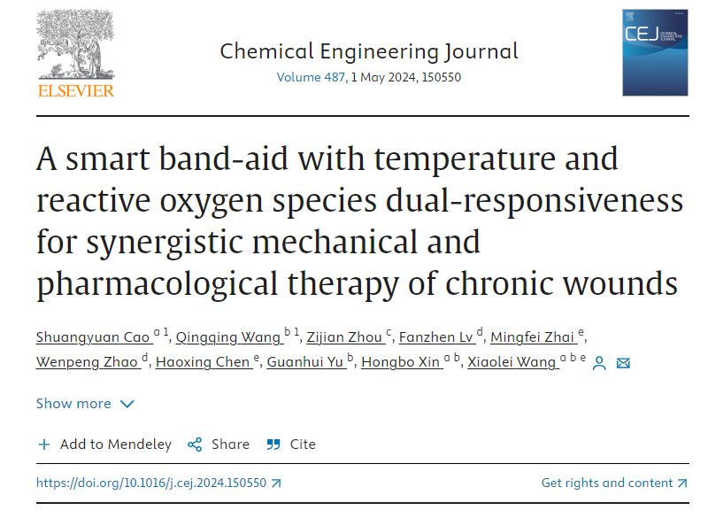 标题:A smart band-aid with temperature and reactive oxygen species dual-responsiveness for synergistic mechanical and pharmacological therapy of chronic wounds