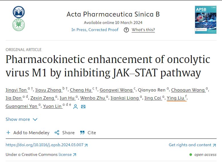 标题:Pharmacokinetic enhancement of oncolytic virus M1 by inhibiting JAK‒STAT pathway