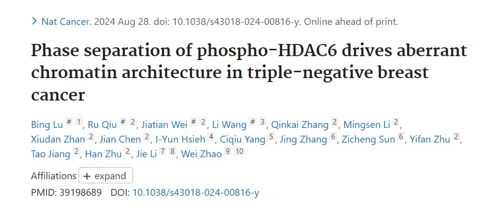 标题:Phase separation of phospho-HDAC6 drives aberrant chromatin architecture in triple-negative breast cancer