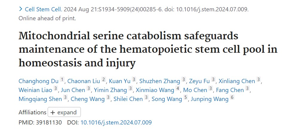 标题:Mitochondrial serine catabolism safeguards maintenance of the hematopoietic stem cell pool in homeostasis and injury