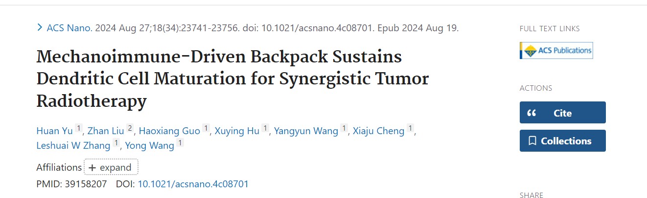 Mechanoimmune-Driven Backpack Sustains Dendritic Cell Maturation for Synergistic Tumor Radiotherapy