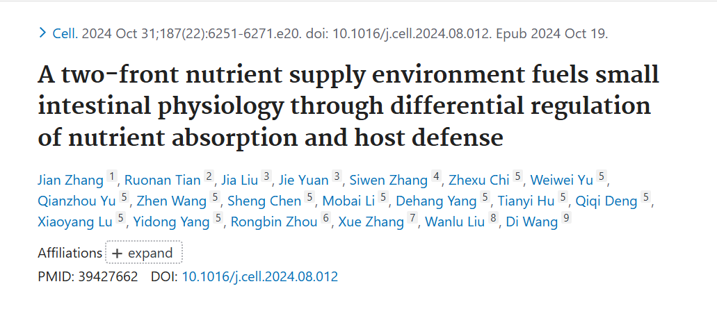 标题:A two-front nutrient supply environment fuels small intestinal physiology through differential regulation of nutrient absorption and host defense