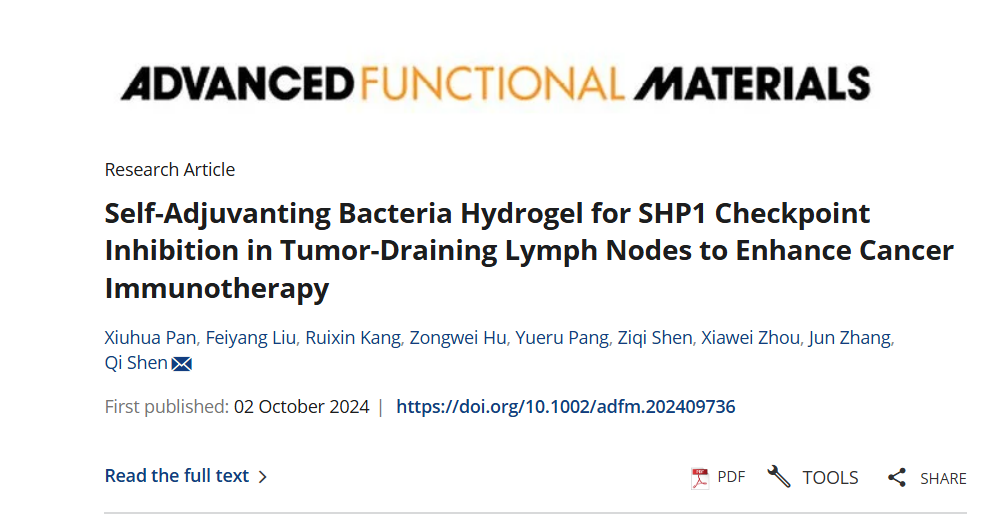 标题:Self-Adjuvanting Bacteria Hydrogel for SHP1 Checkpoint Inhibition in Tumor-Draining Lymph Nodes to Enhance Cancer Immunotherapy