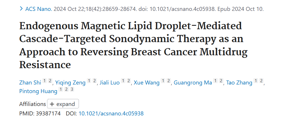 标题:Endogenous Magnetic Lipid Droplet-Mediated Cascade-Targeted Sonodynamic Therapy as an Approach to Reversing Breast Cancer Multidrug Resistance