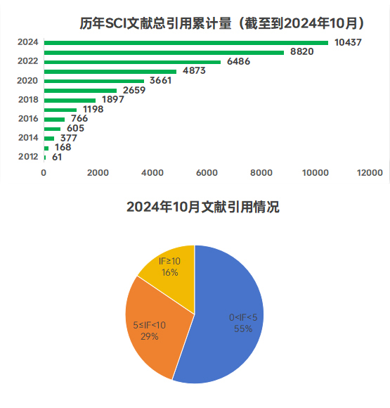 截止2024年10月,全网共计收录引用Lianke/MultiSciences产品的SCI文献达10000多篇!10月单月收录161篇,引用产品333个,总IF值1015.1分,最高IF值45.5!IF值10+文献达25篇。
