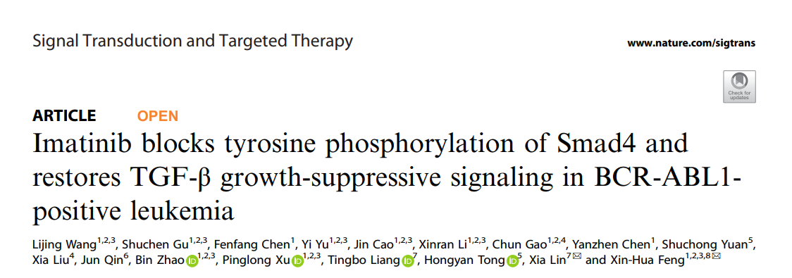 标题:Imatinib blocks tyrosine phosphorylation of Smad4 and restores TGF-β growth-suppressive signaling in BCR-ABL1-positive leukemia