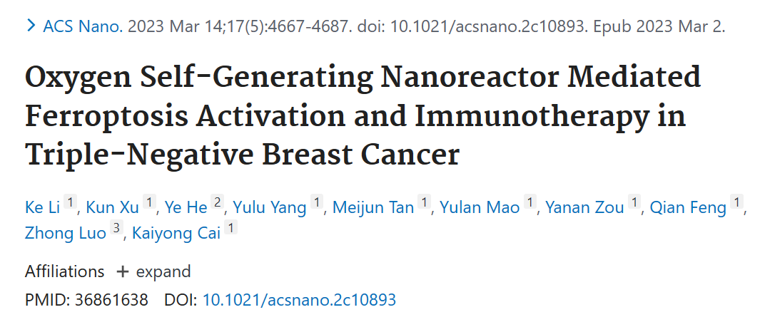 标题:Oxygen Self-Generating Nanoreactor Mediated Ferroptosis Activation and Immunotherapy in Triple-Negative Breast Cancer