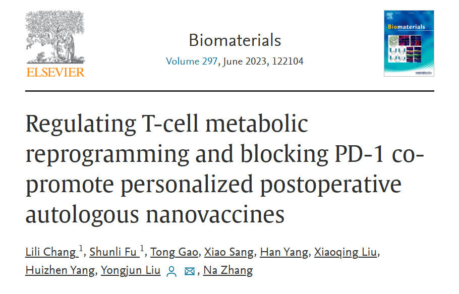 标题:Regulating T-cell metabolic reprogramming and blocking PD-1 co-promote personalized postoperative autologous nanovaccines