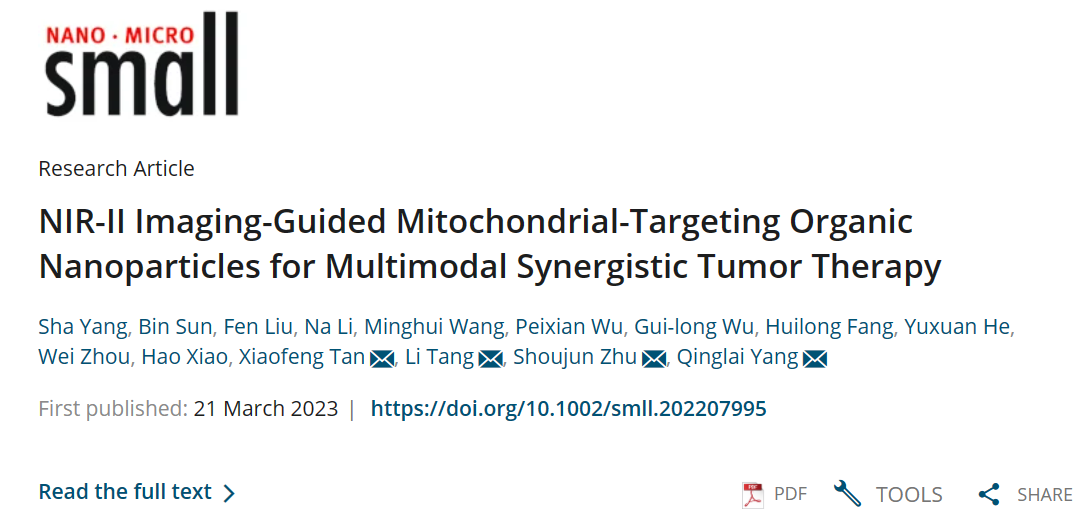 标题:NIR-II Imaging-Guided Mitochondrial-Targeting Organic Nanoparticles for Multimodal Synergistic Tumor Therapy