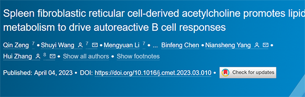 标题:Spleen fibroblastic reticular cell-derived acetylcholine promotes lipid metabolism to drive autoreactive B cell responses