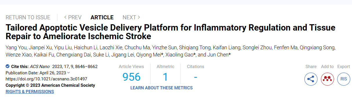标题:Tailored Apoptotic Vesicle Delivery Platform for Inflammatory Regulation and Tissue Repair to Ameliorate Ischemic Stroke