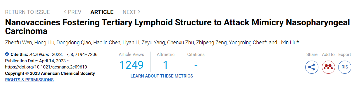 标题:Nanovaccines Fostering Tertiary Lymphoid Structure to Attack Mimicry Nasopharyngeal Carcinoma