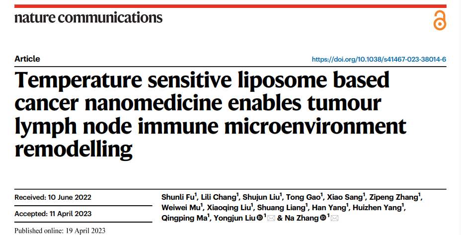 标题:Temperature sensitive liposome based cancer nanomedicine enables tumour lymph node immune microenvironment remodelling