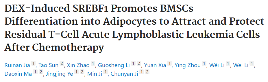 标题:DEX-Induced SREBF1 Promotes BMSCs Differentiation into Adipocytes to Attract and Protect Residual T-Cell Acute Lymphoblastic Leukemia Cells After Chemotherapy