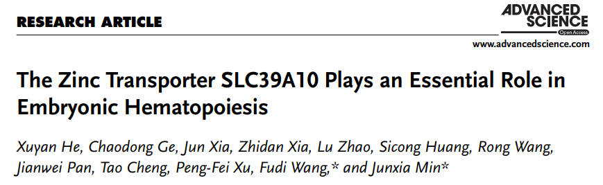 标题:The Zinc Transporter SLC39A10 Plays an Essential Role in Embryonic Hematopoiesis
