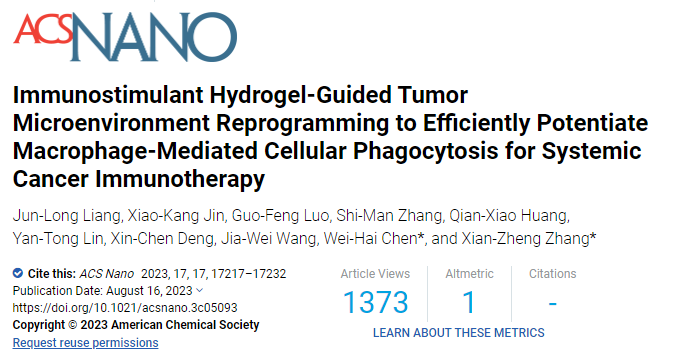 Immunostimulant Hydrogel-Guided Tumor Microenvironment Reprogramming to Efficiently Potentiate Macrophage-Mediated Cellular Phagocytosis for Systemic Cancer Immunotherapy