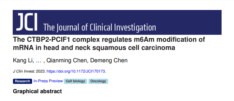The CTBP2-PCIF1 complex regulates m6Am modification of mRNA in head and neck squamous cell carcinoma