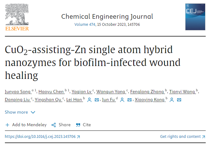 CuO2-assisting-Zn single atom hybrid nanozymes for biofilm-infected wound healing