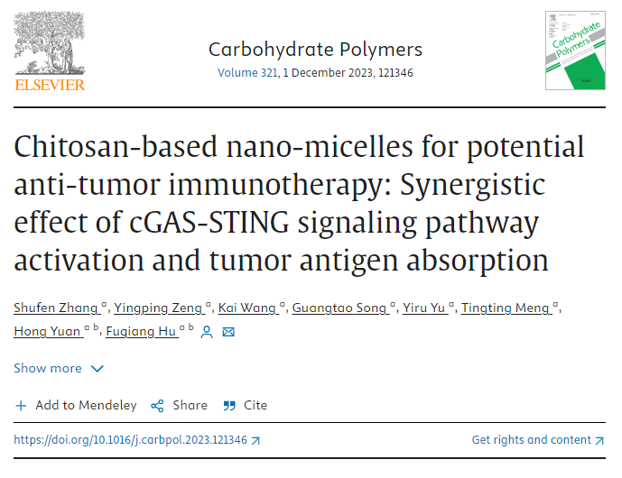 Chitosan-based nano-micelles for potential anti-tumor immunotherapy: Synergistic effect of cGAS-STING signaling pathway activation and tumor antigen absorption