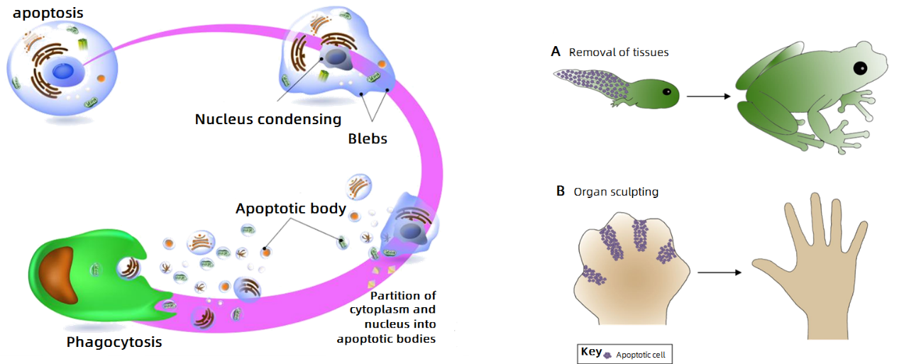 细胞凋亡(Apoptosis):属于细胞程序性死亡(Programmed Cell Death,PCD),是为维持内环境稳定,由基因控制的细胞自主的有序的死亡,属于细胞的“自杀”行为。细胞凋亡是细胞的一种基本生物学现象,在多细胞生物中去除不需要的或异常的细胞中起着必要的作用。